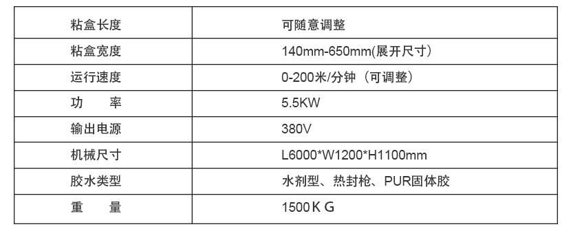 1、本機整機采用進口變頻馬達和變頻器.使整機運行穩定,省電.最大粘盒600mm,最小粘盒60mm.(注:特殊尺寸可訂做).機器外形尺寸:長6000MM*寬1200MM*高1100MM;